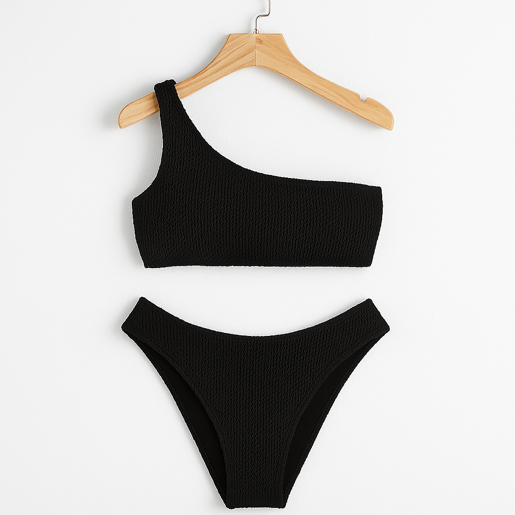 Bademode Bikini Damen einseitig Schulterfrei in Schwarz