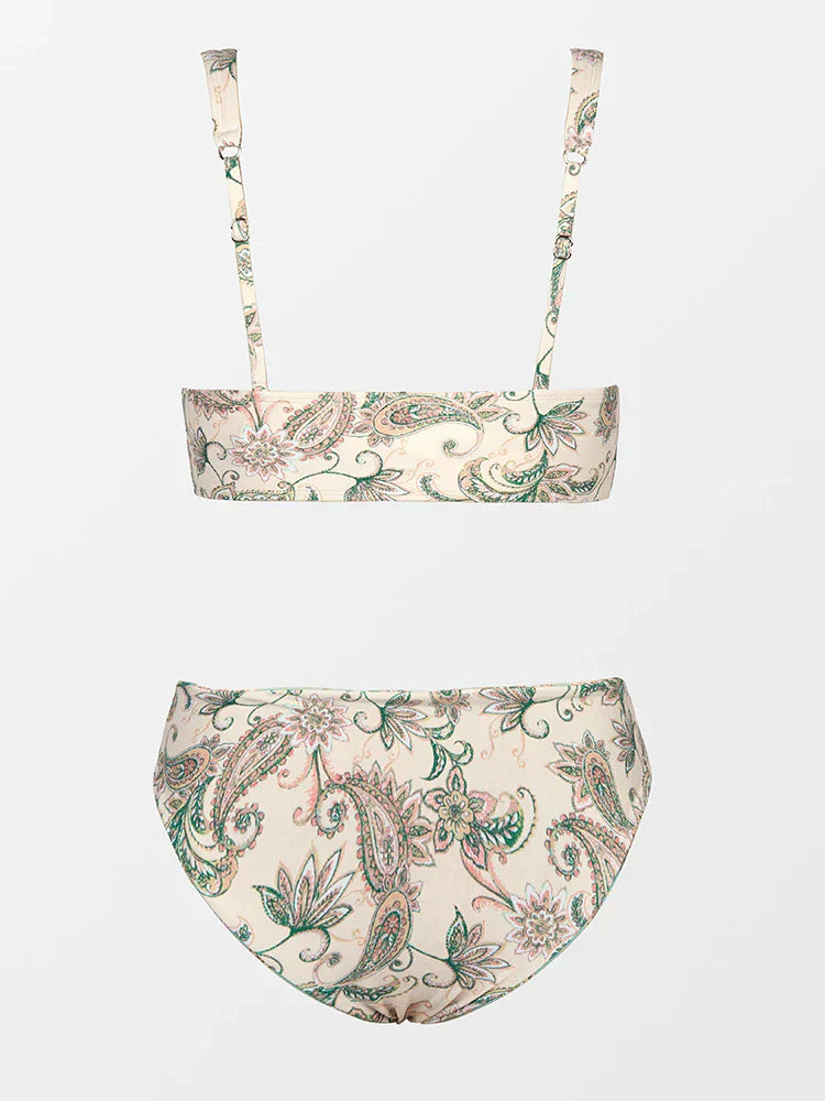 Dieses Bademode-Bikini-Set überzeugt durch seinen zarten Blätterprint in natürlichen Farbtönen und sein modisches Design.