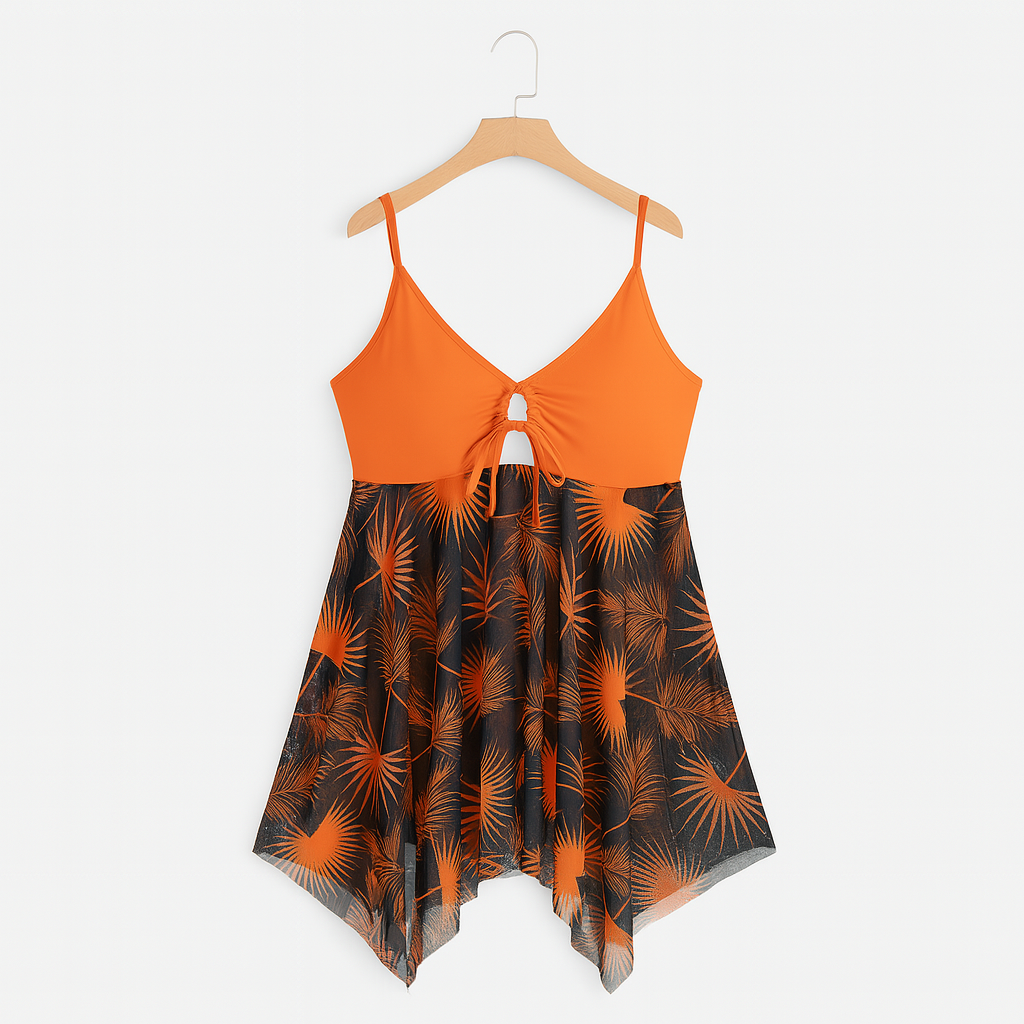 Das integrierte Unterteil bietet dir den Komfort und Halt eines klassischen Badeanzugs, während der Rocküberwurf für zusätzlichen Charme und eine kaschierende Wirkung sorgt. Ideal für Strandspaziergänge, Pooltage oder entspannte Urlaube – dieser Look vereint alles, was du dir wünschst.