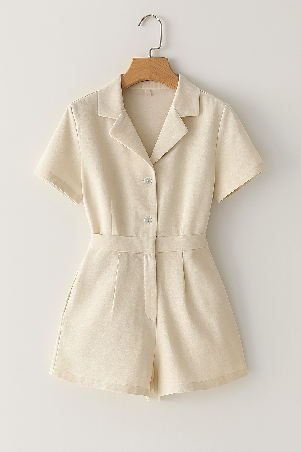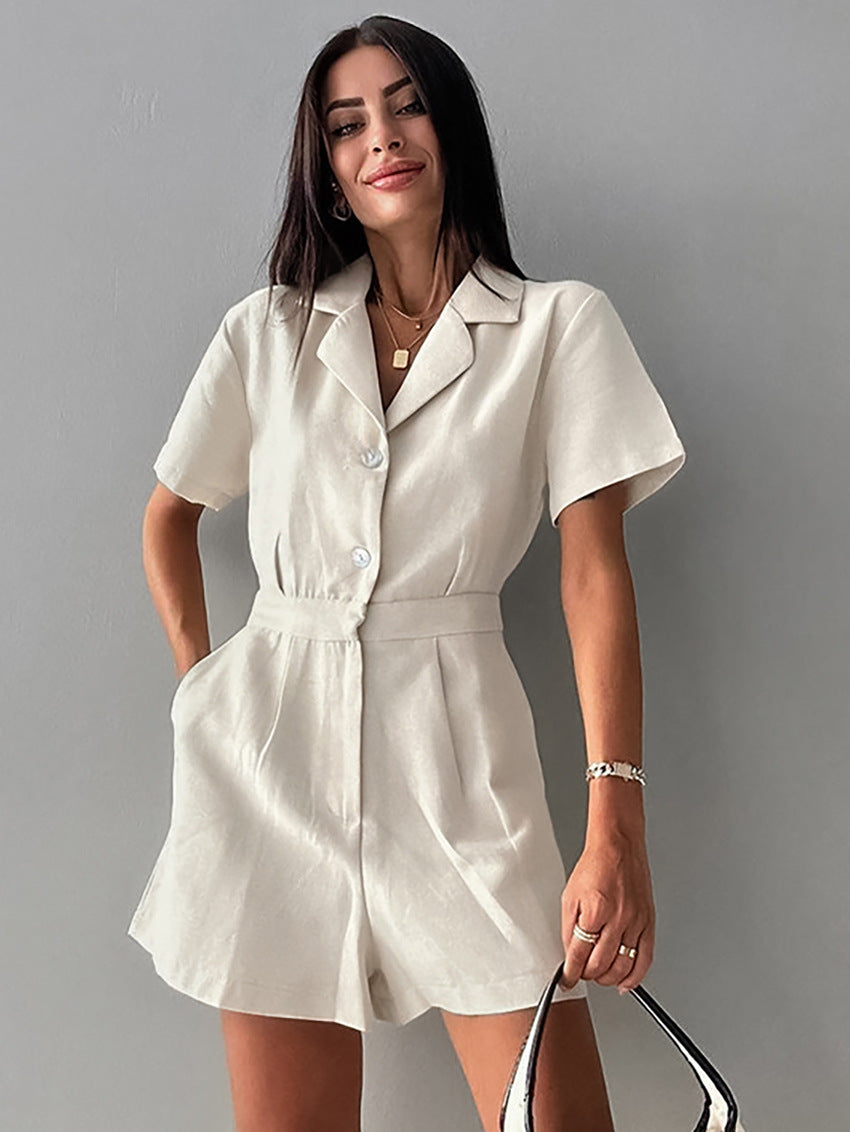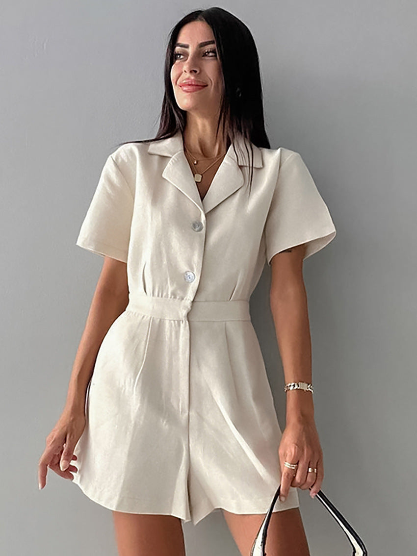 Der Jumpsuit Beiger Kurzarm mit Knopf für lässige Damenoutfits ist die ideale Wahl für modebewusste Frauen, die Komfort und Stil suchen.
