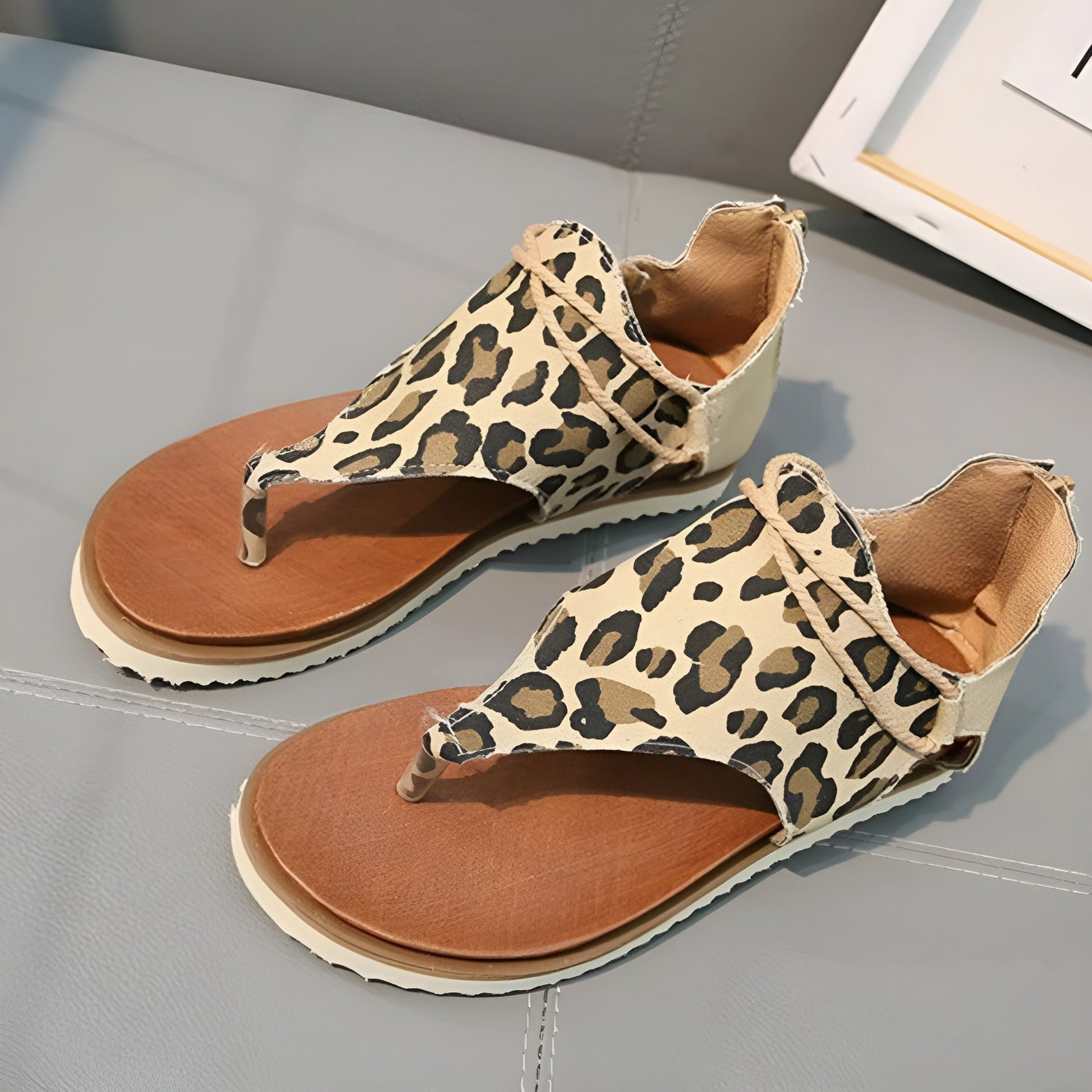 Diese Sandalen im Gladiator-Stil mit trendigem Leopardenmuster vereinen Eleganz und Komfort.