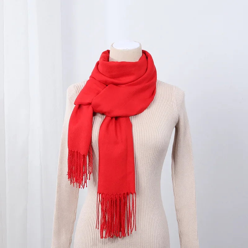 Schal für Frauen, dick, koreanischer Stil, großes rotes Logo, warm und vielseitig, ideal für Winter