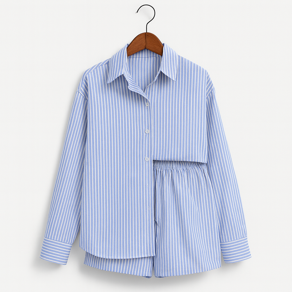 Jedes Set wurde mit Liebe zum Detail gefertigt und sorgt für einen herausragenden Tragekomfort. Die leichten, atmungsaktiven Materialien sind ideal für die warmen Monate und bieten Ihnen sowohl Stil als auch Bequemlichkeit. Genießen Sie die Vielseitigkeit dieser Streifen-Sets, die sich mühelos für verschiedene Anlässe und Kombinationen eignen, und erleben Sie Mode, die sowohl schick als auch funktional ist.