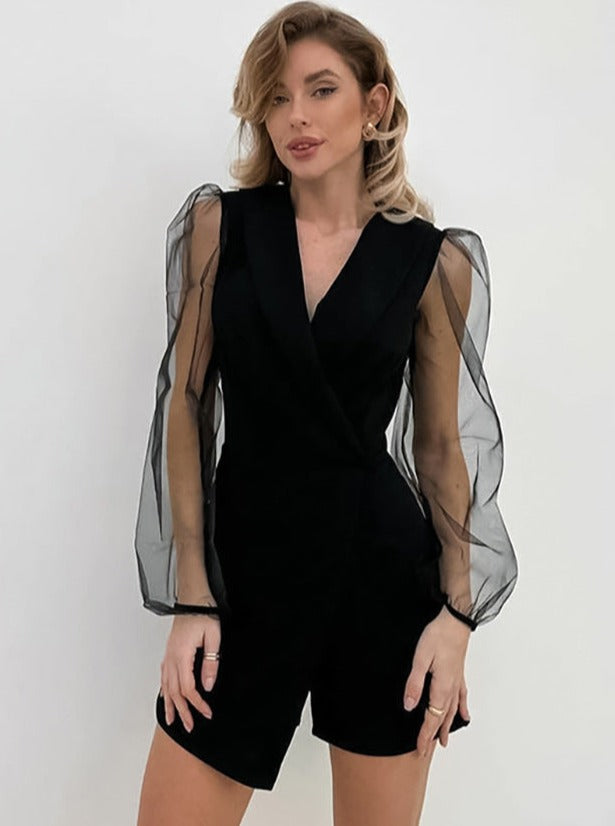 Eleganter Frauen Jumpsuit mit langen Ärmeln und Transparenz-Einsätzen