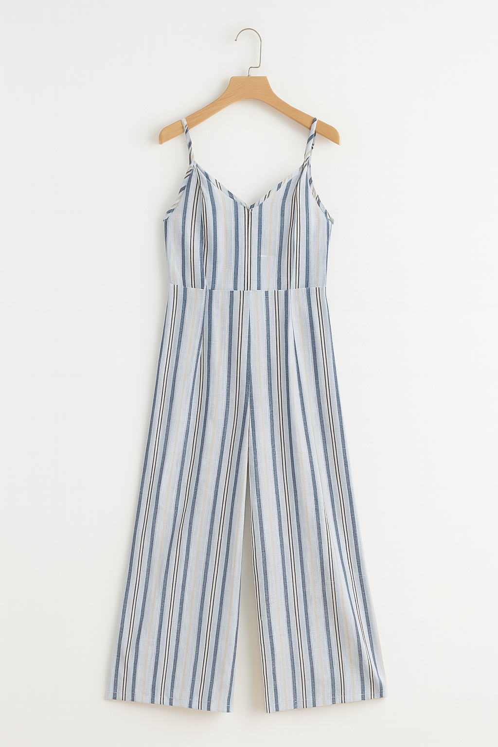 Der V-Ausschnitt schmeichelt der Figur und sorgt für eine feminine Ausstrahlung, während das ärmellose Design an warmen Tagen für eine angenehme Kühlung sorgt. Die gestreifte Optik verleiht dem Jumpsuit eine zeitlose Eleganz und lässt sich mühelos mit verschiedenen Accessoires kombinieren.