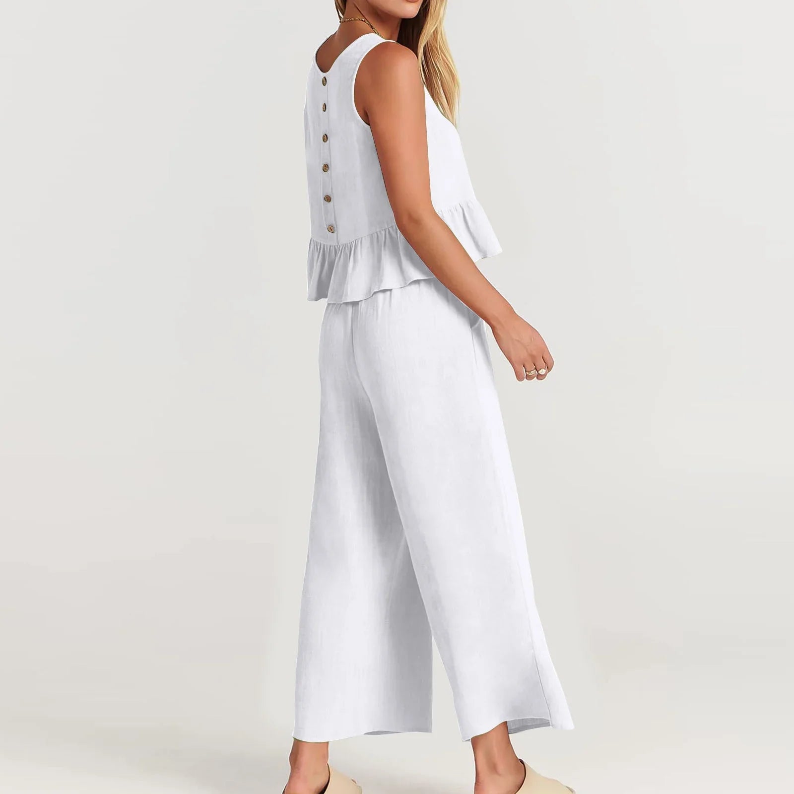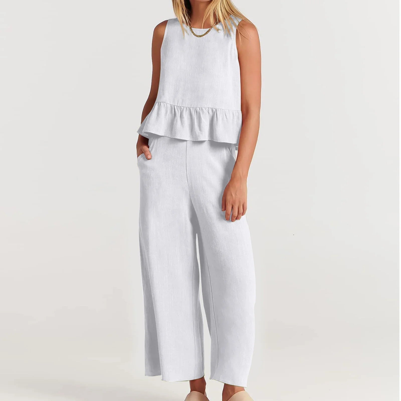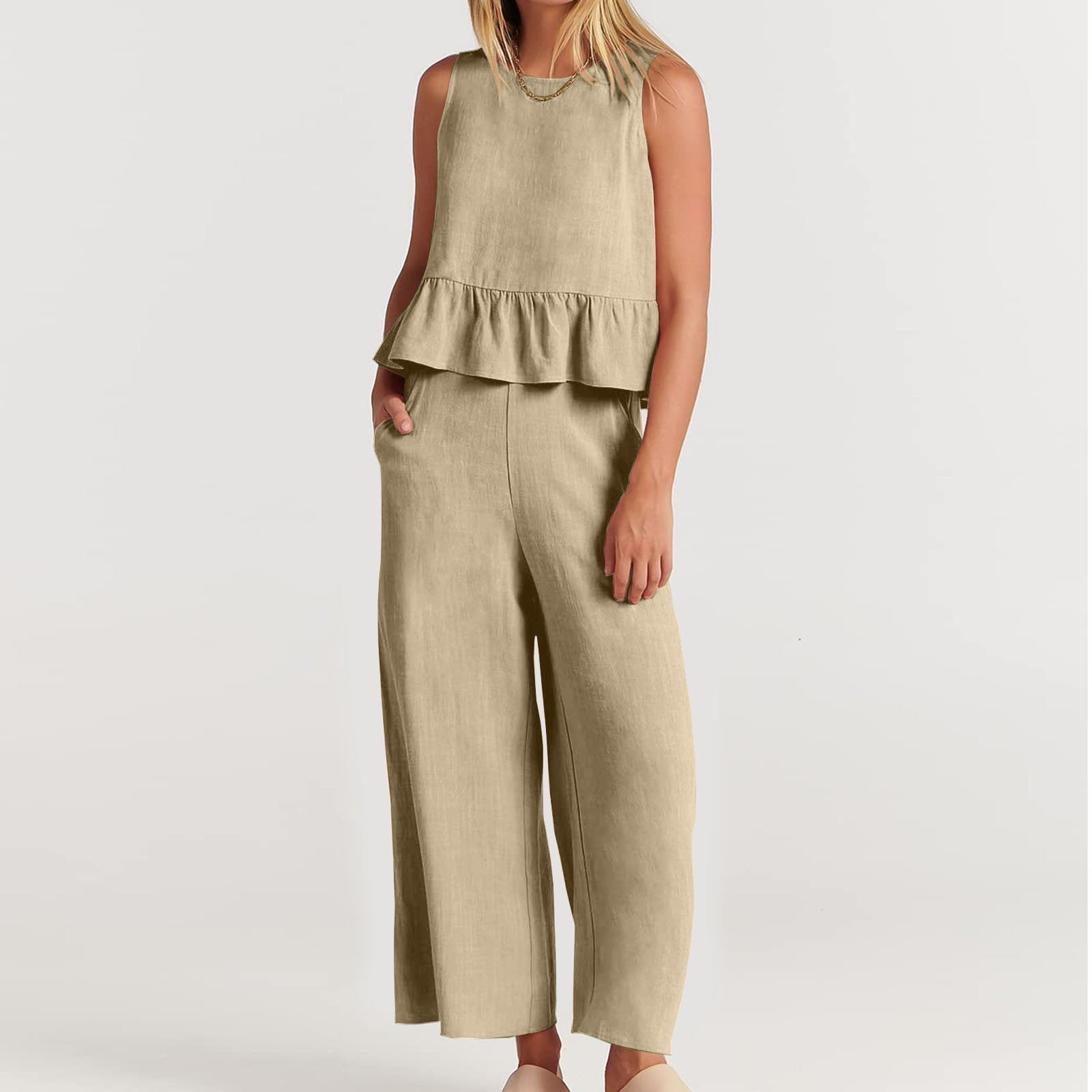Dieses zweiteilige Sommeroutfit für Damen kombiniert Leichtigkeit und Stil in Perfektion