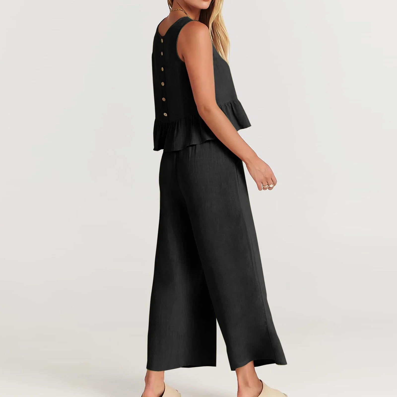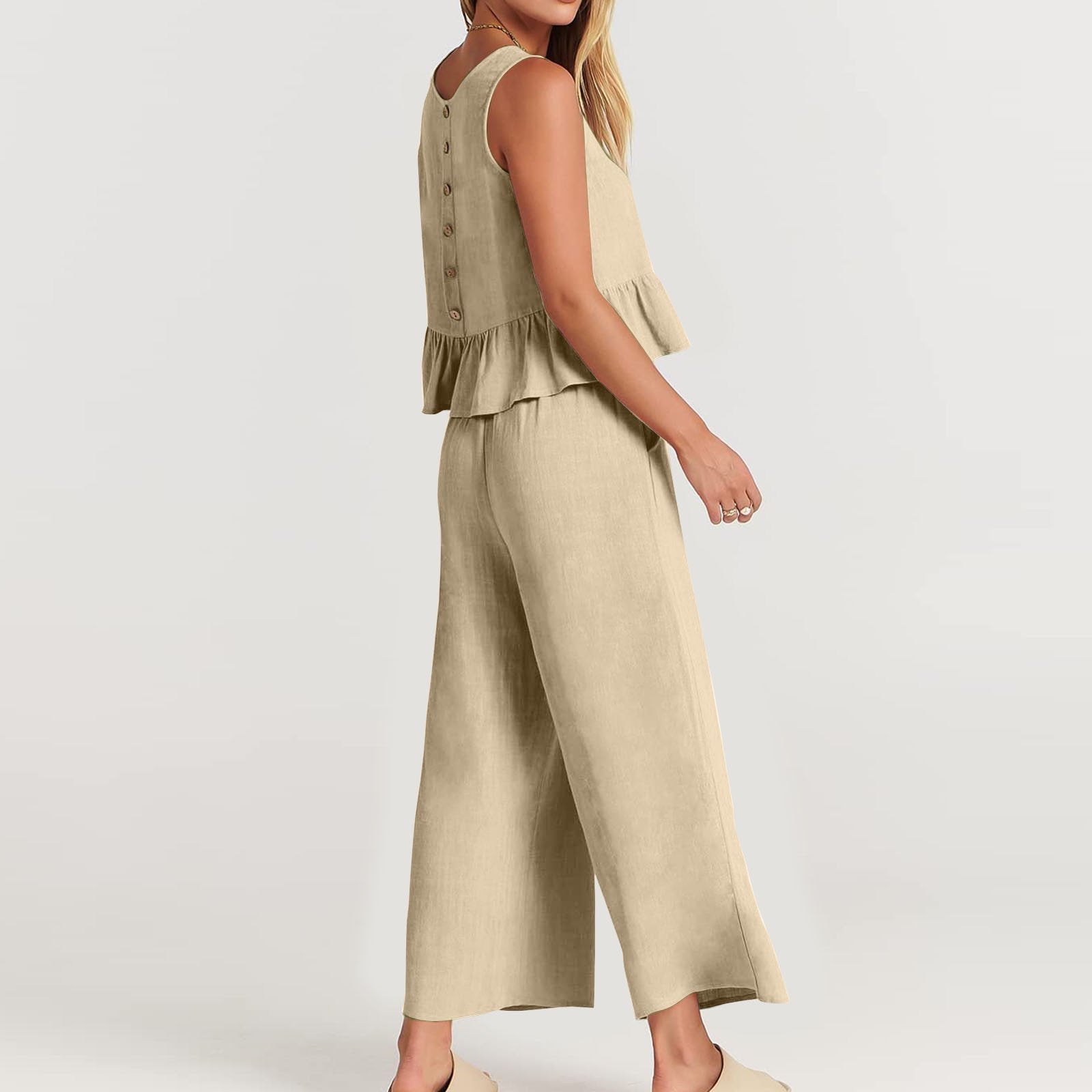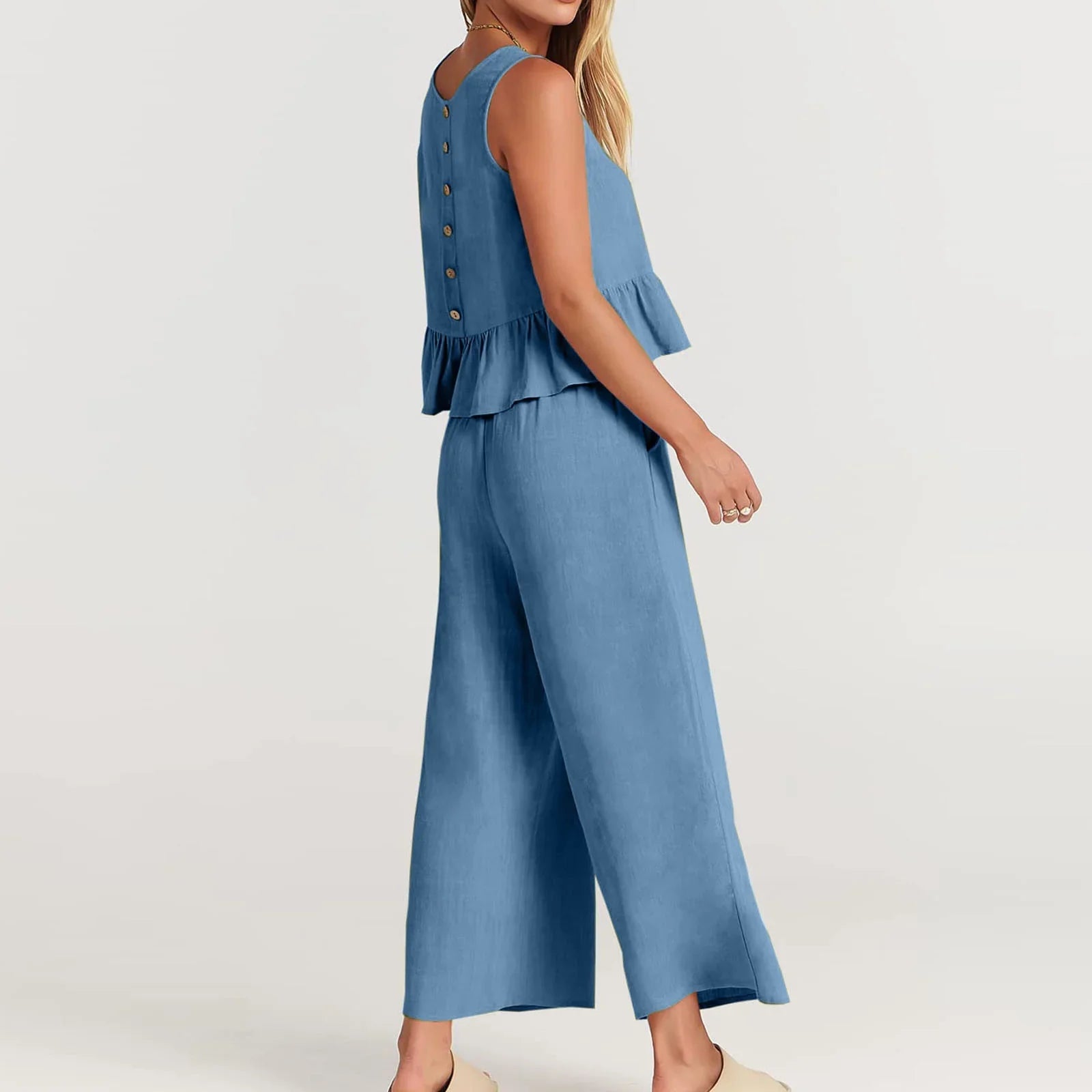 Dieses zweiteilige Sommeroutfit für Damen kombiniert Leichtigkeit und Stil in Perfektion