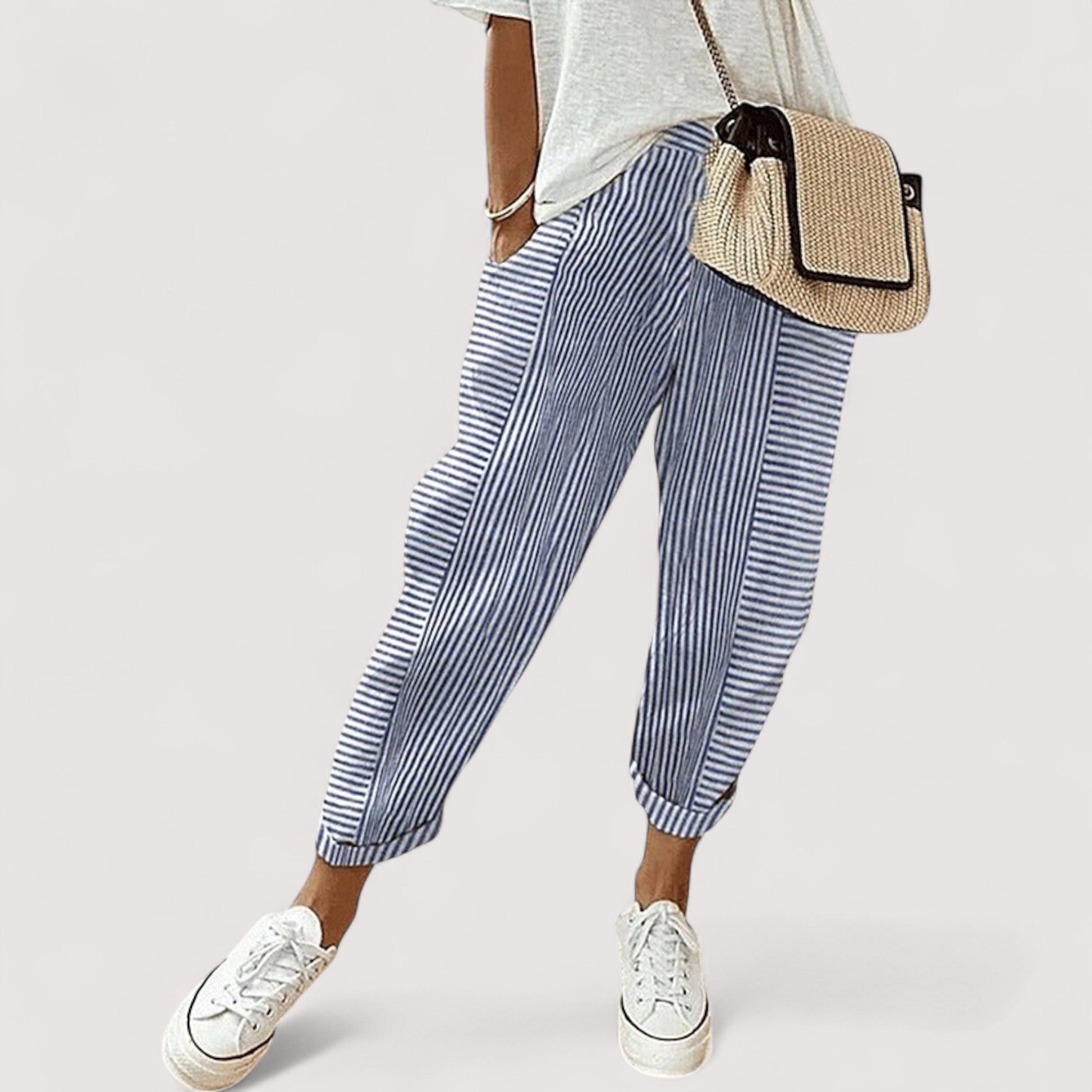 Gestreifte Hose vereint Komfort und Stil und bietet eine lockere Passform sowie ein vielseitiges Design, das perfekt für jeden Anlass ist.