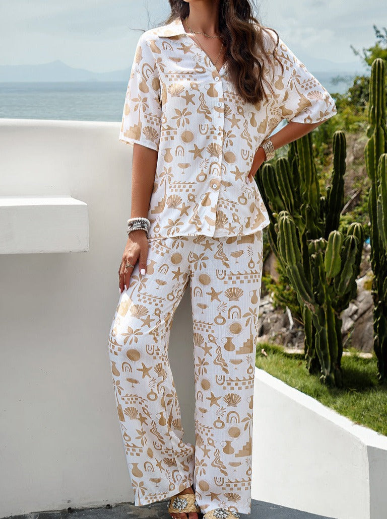 Sets aus weißem Anzug mit bedruckten, kurzen Ärmeln bieten die perfekte Balance zwischen Eleganz und Lässigkeit.