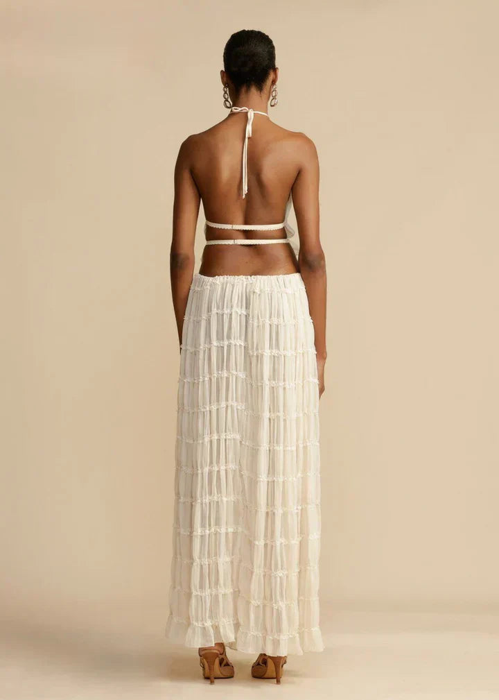 Dieses Set aus Haltertop und Rock ist die perfekte Kombination für einen stilvollen und femininen Look